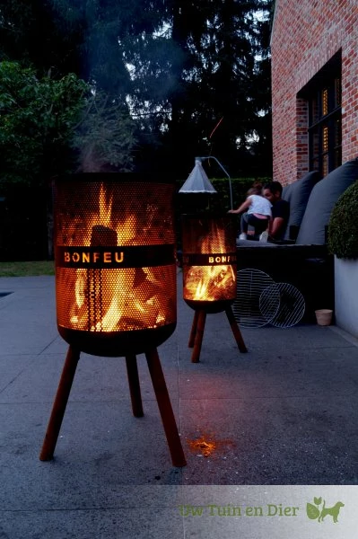 Ook de vuurkorf BonVes staat op de kenmerkende hoge poten waar het merk Bonfeu om bekend staat. De korf van de BonVes doet denken aan een ouderwetse wasmachinetrommel. Dit type vuurkorven (met een geperforeerde trommel) staat erom bekend dat ze een grote warmte-afgifte hebben. Daarnaast hebben de miniscule gaatjes in het staal een geweldig sfeervol effect tijdens het stoken.