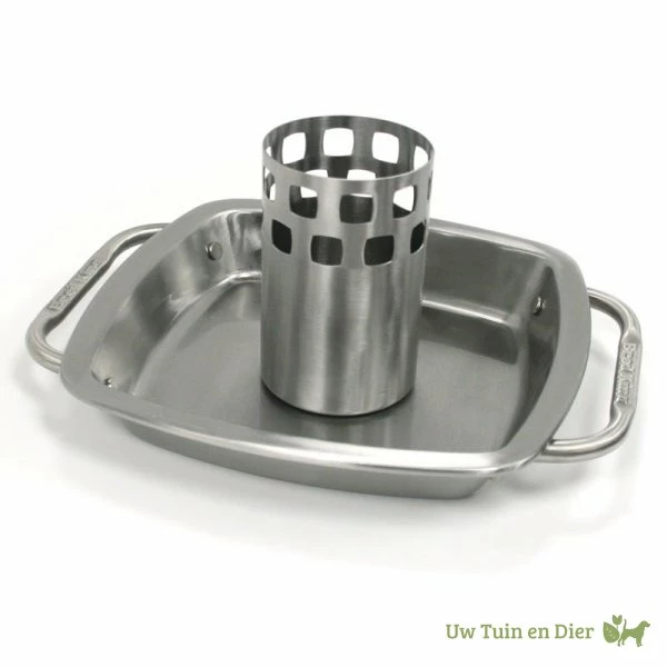 Met de Broil King kiphouder plaatst u de kip rechtop in uw Broil King barbecue. De druippan vangt alle vet op en biedt ruimte om groenten en aardappelen met uw kip te bereiden.