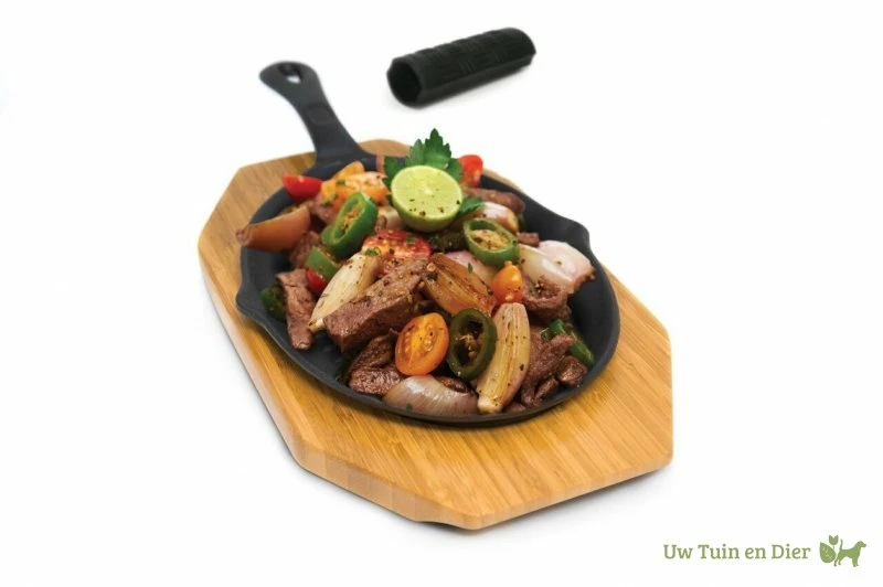 Broil King gietijzeren fajita pan met houten plank en handvat met hoesje