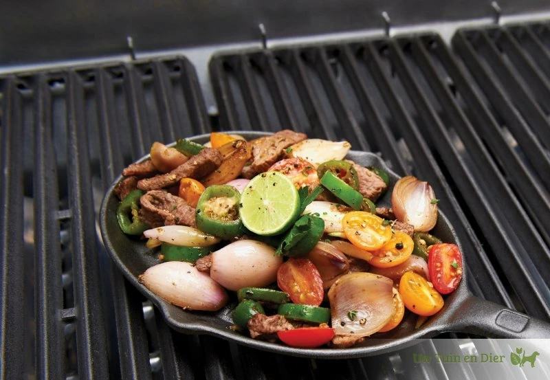 Deze praktische set zal je inspireren en wordt al snel een veelgebruikt accessoire op je grill. Het bestaat uit een gietijzeren pan, een hoogwaardige houten serveerplank en een handgreepafdekking voor de panbeugel. Zo kun je niet alleen heel goed aan de grill werken, maar heb je ook alle mogelijkheden om de afgewerkte grillschaal op een indrukwekkende manier te presenteren.