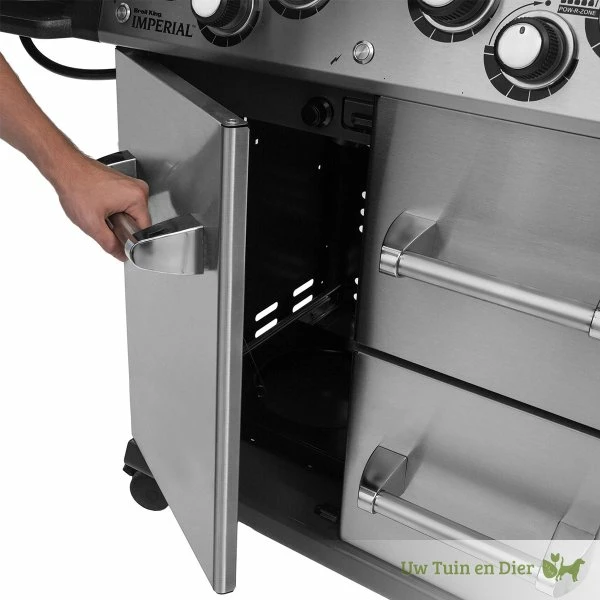 De kwaliteit kenmerkt zich met name door het dubbelwandige RVS deksel en de zijdelen, die zijn gemaakt van gegoten aluminium. Dankzij de roestvrijstalen zijpanelen met praktische frontplanken van gegoten aluminium en de geïntegreerde lade aan de rechterkant ben je tijdens het grillen altijd goed georganiseerd. Het onderstel biedt extra opbergruimte voor diverse accessoires met een deur en twee lades. De Imperial S490 is bijzonder wendbaar dankzij de zwenkwielen en door de twee in hoogte verstelbare zwenkwielen kan de gasbarbecue optimaal worden uitgelijnd op een oneffen ondergrond.