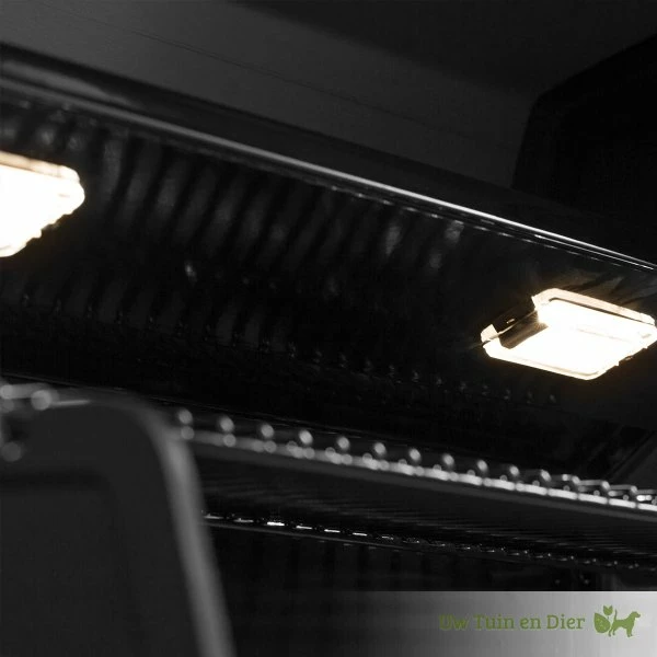 Dankzij de verlichte grillkamer wordt de gehele kookruimte verlicht. Zo blijft barbecueën zelfs op een laat uur comfortabel.
