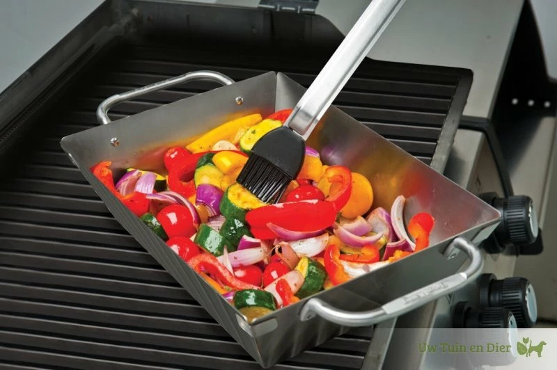 Met deze wok bereid je je groenten uitstekend op de grill, de vierkante perforatie aan de onderkant van de wok voorkomt dat de gegrilde etenswaren blijven plakken. Daarnaast zorgt de extra diepe vormgeving van de wok ervoor dat je groenten in de wok blijven als je ze mixt.