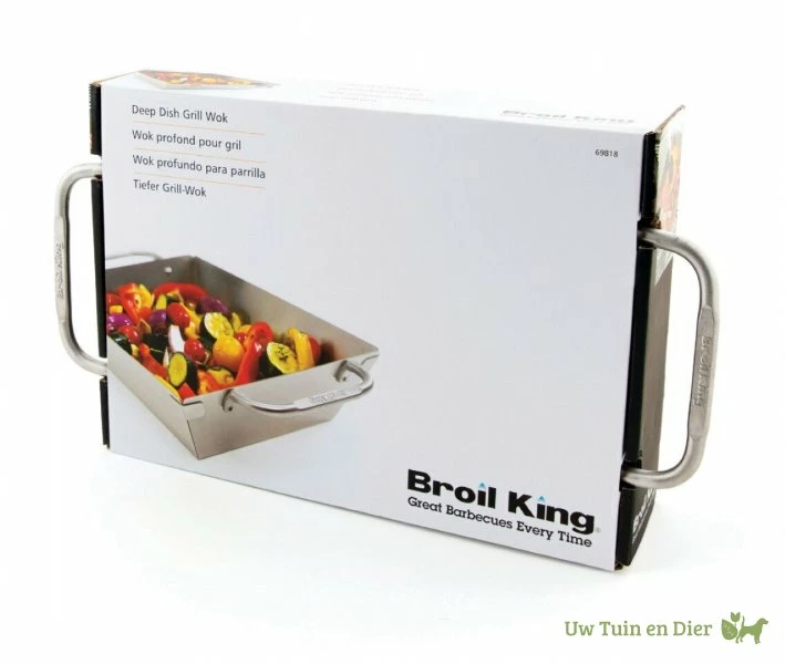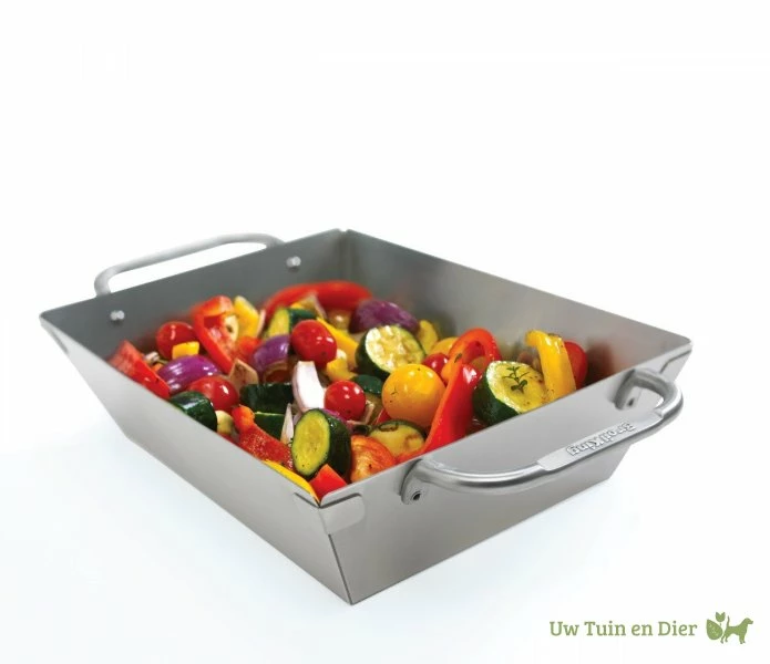 De Broil King Wok met gaten van 1,2 mm dik RVS en 10 mm dikke RVS handgrepen is de perfecte accessoire voor op je barbecue.