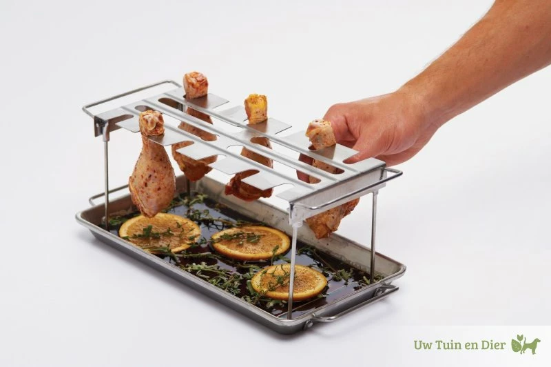 Hartige of pittige kippendijen, kippenvleugels in BBQ-marinade en een fruitige saus – als grillfan krijg je trek. Deze gerechten zijn eenvoudig te bereiden met het Wing Rack.