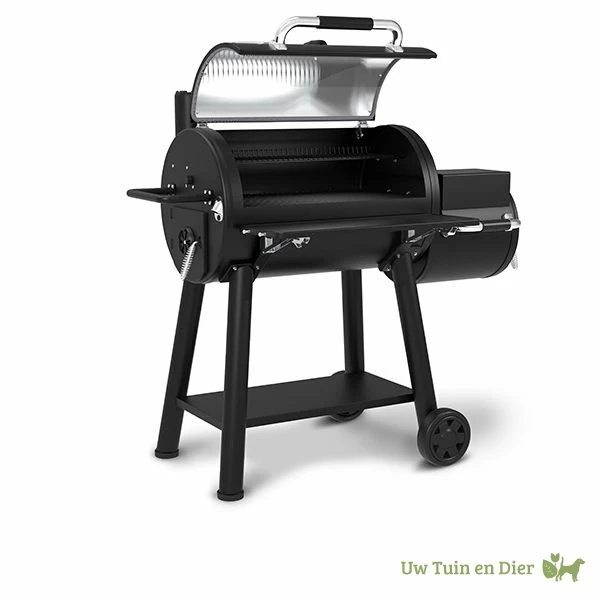 Het luchtregelingssysteem bestaat uit een schoorsteen met de zogenoemde Roto-Draft™-technologie. Hiermee regel je de temperatuur zeer nauwkeurig. Daarnaast zit de Offset smoker boordevol handige tools en features, waaronder een inklapbare plank aan de voorkant voor je bbq benodigdheden, gereedschapshaken, houtskoolbakken en zelfs een flesopener.
