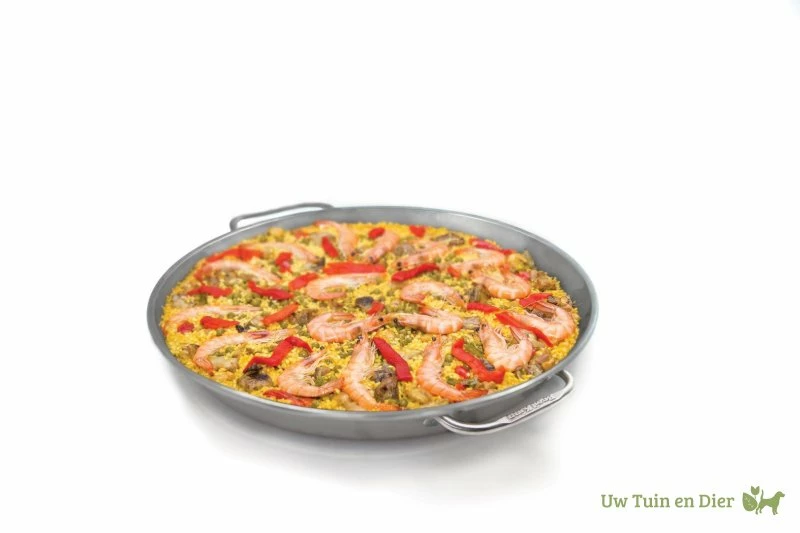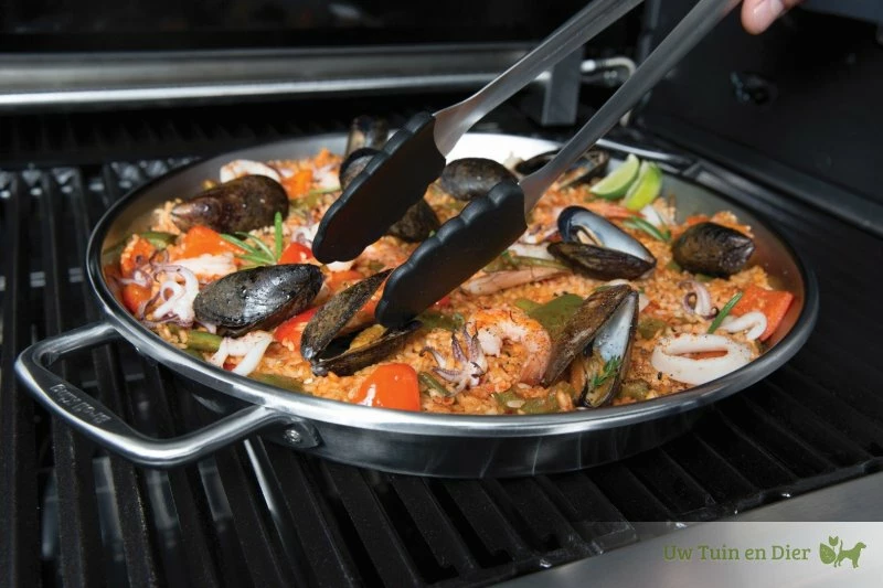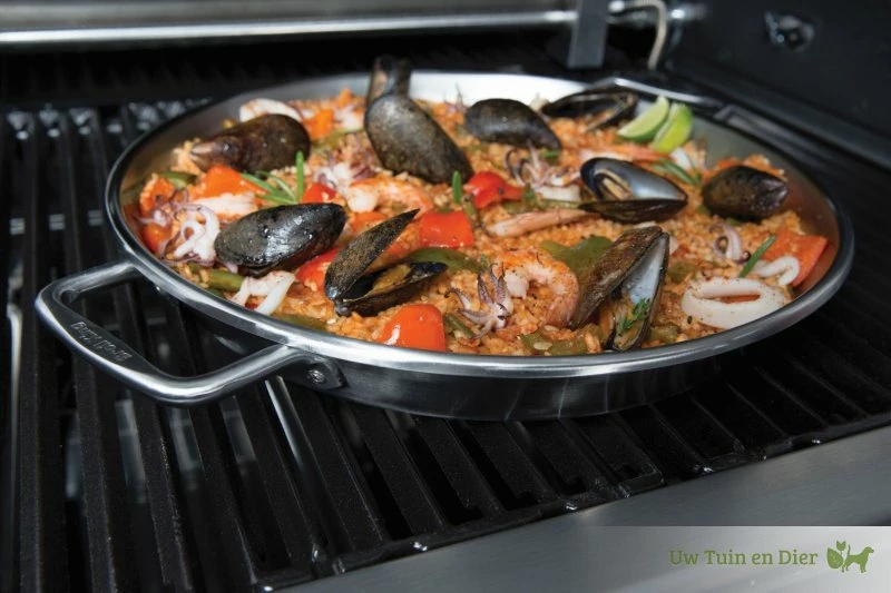Paella is een iconische Spaanse schotel, traditioneel gekookt boven hete kool, maar ook kan oo perfect klaar gemaakt worden op een gasbarbecue dankzij deze roestvrij stelen Paella pan van Broil King. Maar deze pan is multifunctioneel zodat er ook perfect andere gerechten in kunnen klaar gemaakt worden.