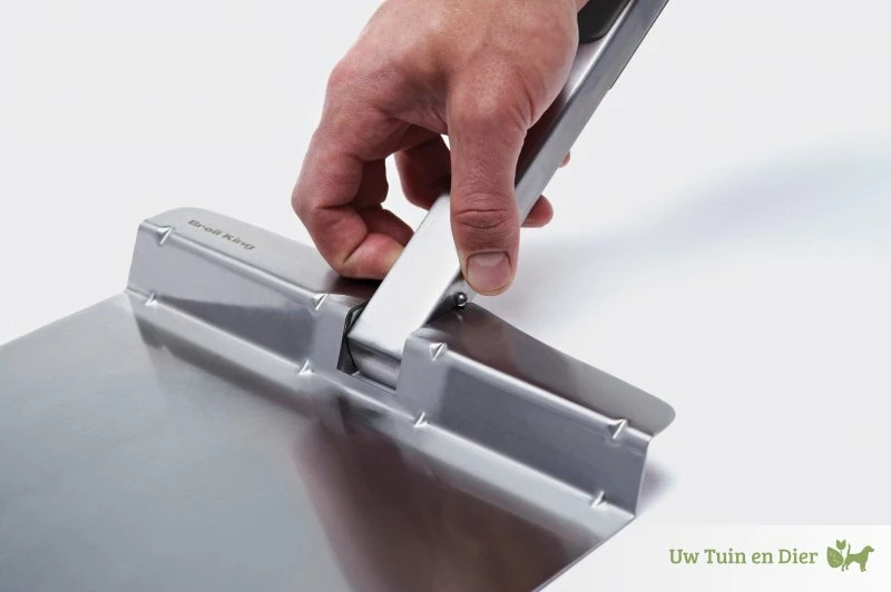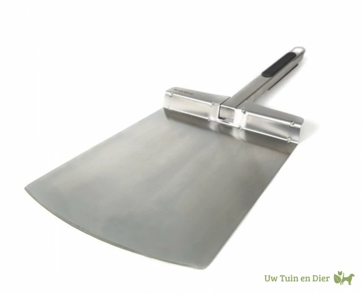 De Broil King pizzaschep is gemaakt van RVS en ligt stevig en zwaar in de hand.