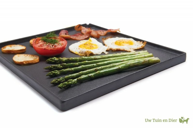 De gietijzeren bakplaat is aan beide kanten te gebruiken. Ze hebben een gladde kant en een geribbelde kant, ideaal voor vlees, vis en groenten. Zelfs voor een ontbijtje met spek en ei in de morgen.