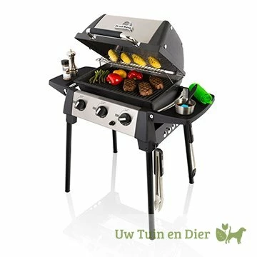 De draagbare gasbarbecue Porta-Chef Pro zorgt ervoor dat je nu overal kunt genieten van perfect gegrild voedsel. Hij heeft een roestvrijstalen staafbrander met een vermogen van 5,25 kW.