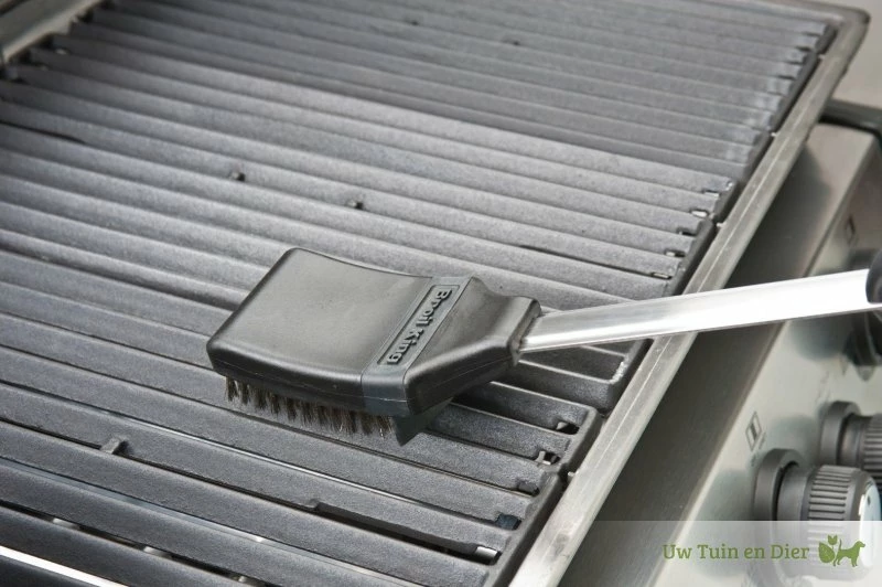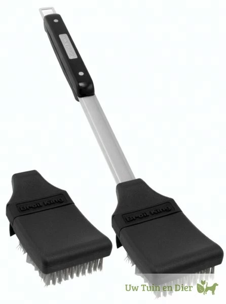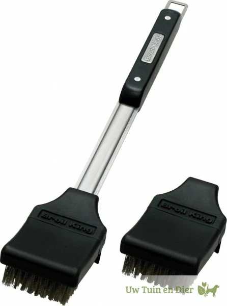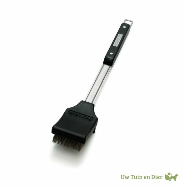 Deze duurzame reinigingsborstel is het perfect middel voor het reinigen van uw grillrooster. Dankzij de stevige handgreep kan men goed kracht zetten voor het reinigen van uw barbecuerooster. Als de kop versleten is, kan men deze makkelijk vervangen door een nieuwe. Wordt geleverd met één reserve borstel.