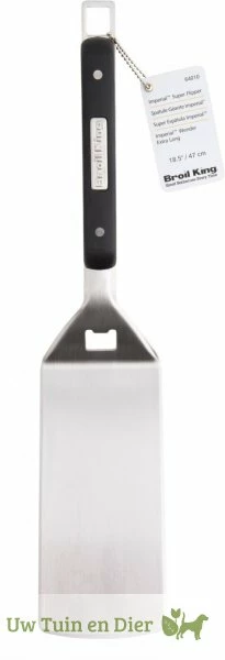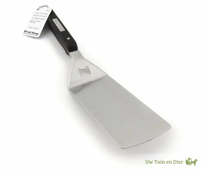 De premium XL spatel is gemaakt van dezelfde kwaliteitsmaterialen als de gewone Imperial spatel met een schep die twee keer zo lang is om meer hamburgers om te draaien of grotere stukken vlees of vis op te scheppen.