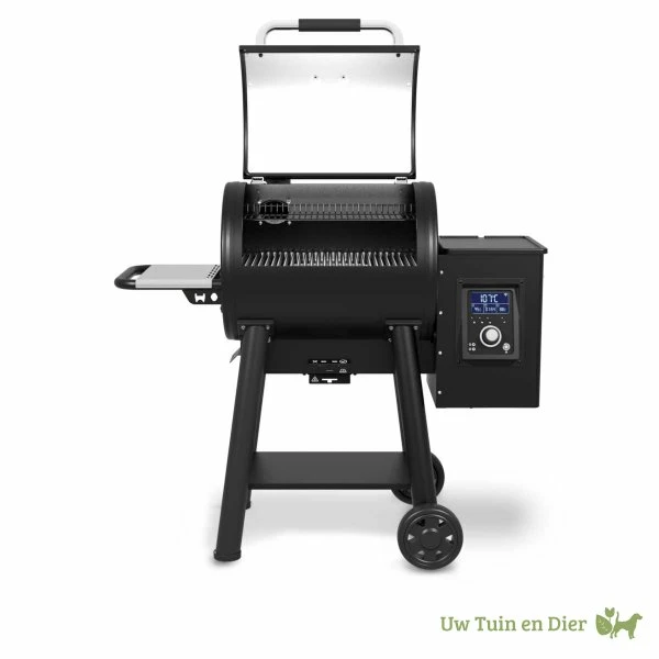De Regal Pellet 400 heeft een gepoedercoate grillbehuizing van 2 mm dik staal. De grill en rokerij is stevig verwerkt. Het grilldeksel heeft een handvat van roestvrij staal en sluit dankzij de afdichting luchtdicht af – het rookaroma wordt tijdens het roken in de rookkamer geïsoleerd. Met de twee wielen plaats je de grill eenvoudig op de gewenste plek. Als de grond oneffen is, kunnen de poten in hoogte worden versteld.