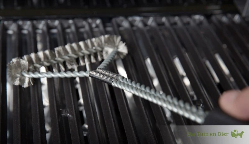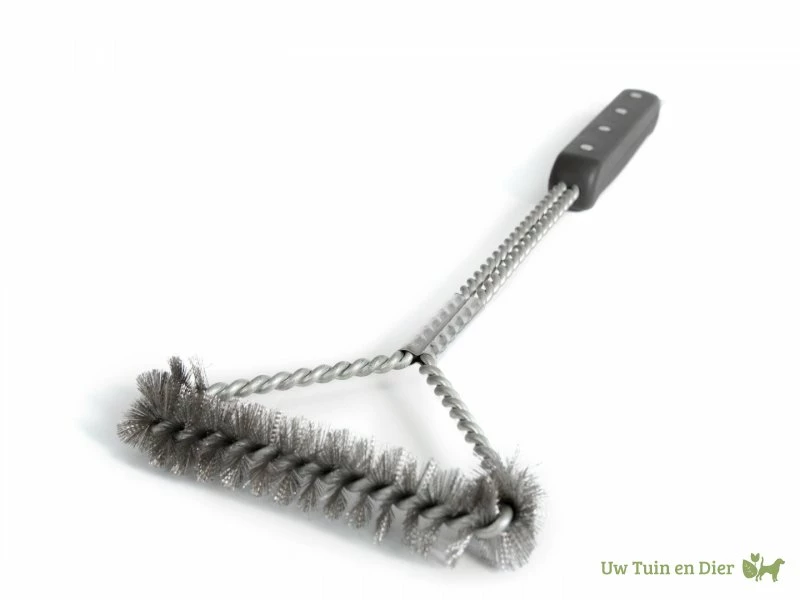 Reinigingsborstel met zacht en comfortabel rubberen handvat en een 16,5cm grote roestvrij stalen gedraaide borstelkop waardoor deze borstel tot diep in de hoeken van de barbecue reinigt.