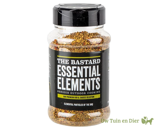 Een excentrieke rub om flink mee te experimenteren: bijvoorbeeld op een zalmmoot of op steak. Een flinke hoeveelheid zwarte en witte peper, korianderzaad, selderij en een mix van knoflook, ui en andere gedroogde groenten.